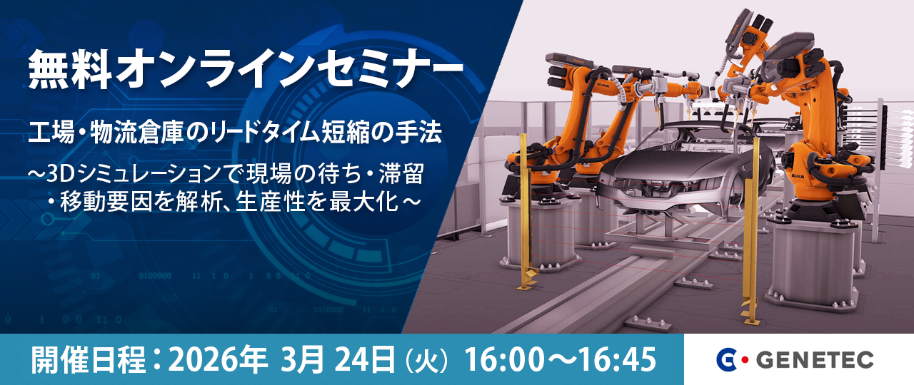 2026年3月24日(火)開催 【無料オンラインセミナー】 リードタイム短縮のヒントが見つかる!工場・倉庫の待ち時間を可視化するシミュレーション活用セミナー